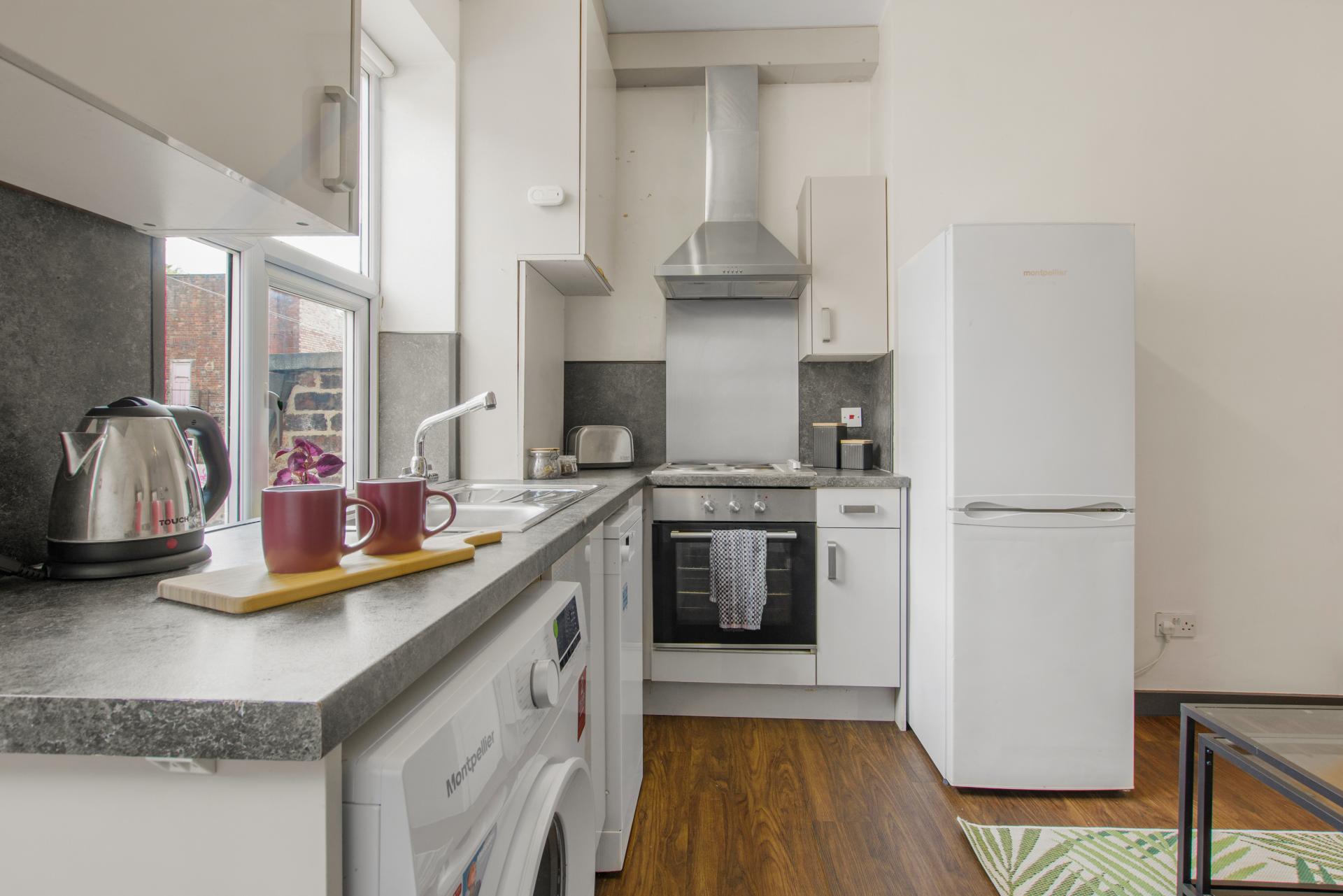 3 double bedroom property overlooking private garden to the rear. Close to the Hyde Park Pub and the Universities. All bedrooms include double beds, built-in wardrobes, desk with chair and telephone point. Lounge with laminate floor and furnished with glass coffee table & TV stand and 2 black leather sofas. Contemporary beech effect fitted kitchen units with stainless steel handles, featuring washing machine, slimline dishwasher, separate fridge and freezer, stainless steel oven and hob. Large bathroom with full white suite including corner bath with electric shower over and extractor. Burglar alarm, fire alarm, emergency lighting. Great for students and professionals.